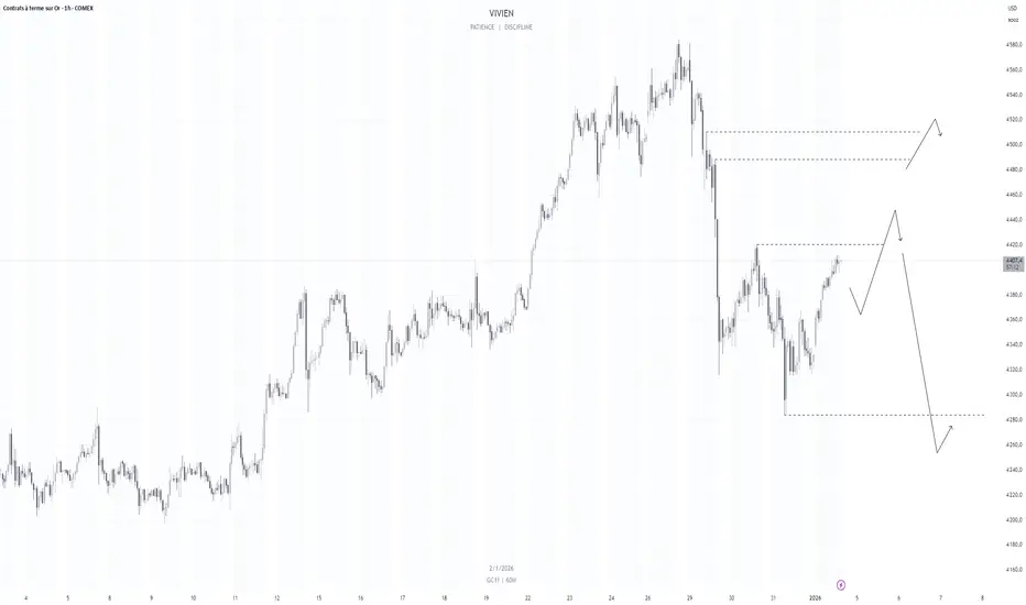 Le GOLD est haussier en HTF (>H4) et baissier MTF.