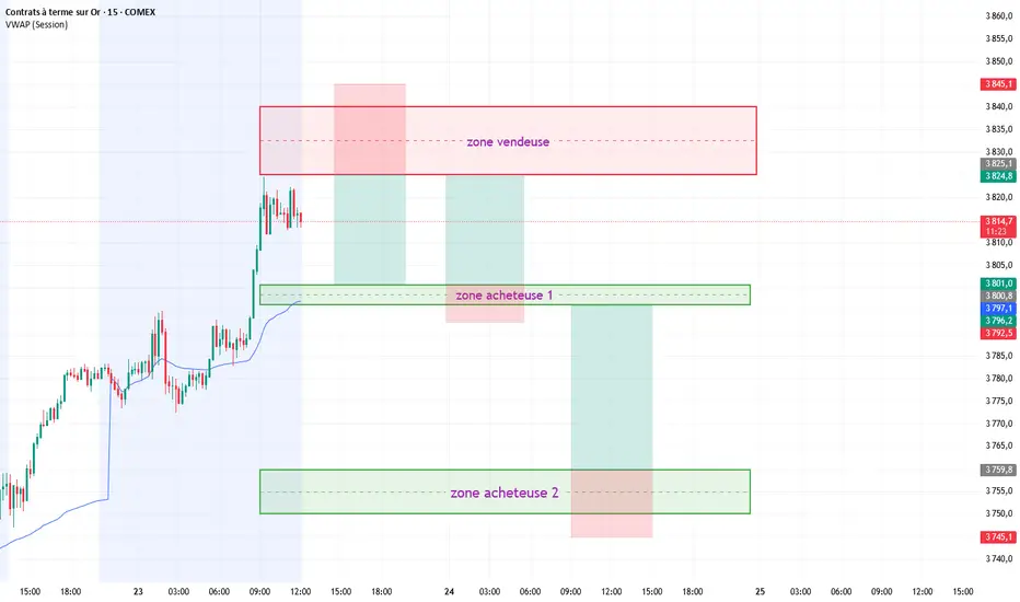 Contexte : Or soutenu (couverture risque). PMIs puis Powell 12:35 → possible whipsaw. GVZ/VIX à surveiller ; pas de trade dans la fenêtre news.