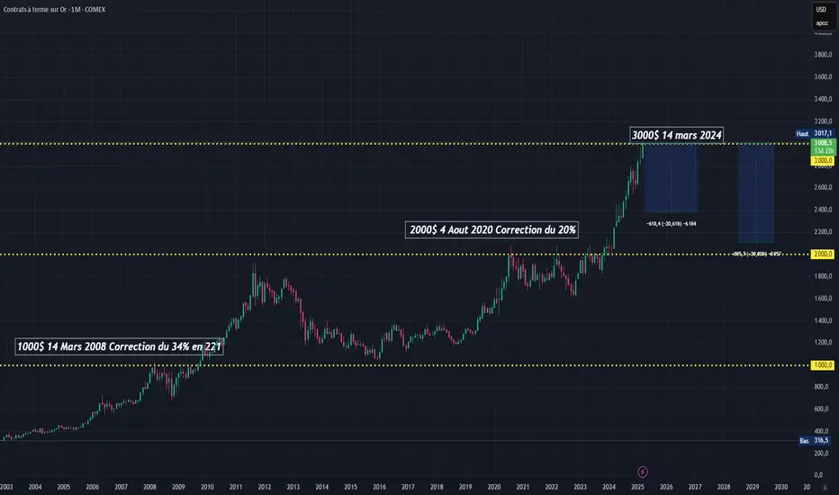 Une petite erreur s’est glissée dans mon analyse : l’or a franchi les 3 000 $ l’once le 14 mars 2025 (et non 2024 comme indiqué initialement).Merci à ceux qui me l'ont signalé, et désolé pour cette confusion. L’analyse reste bien valable et à jour.