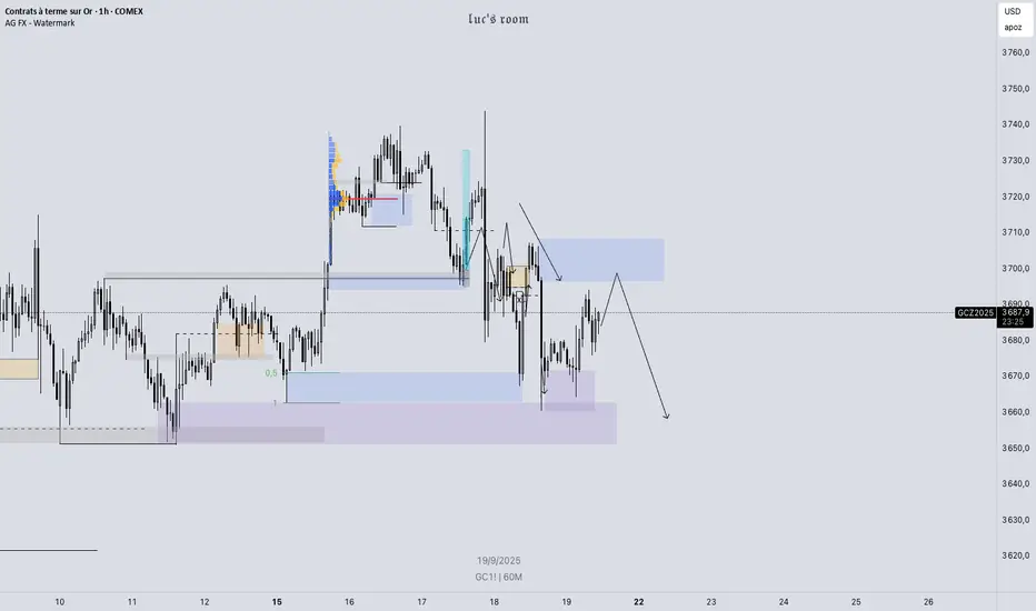 👉 En résumé, l’or est actuellement en phase de rebond technique. Tant que les acheteurs défendent l’OB violet, un mouvement vers 3700 et l’OB H1 est envisageable. Mais attention : à moyen terme, la pression vendeuse pourrait reprendre le dessus, et déclencher une accélération baissière vers de nouveaux plus bas.