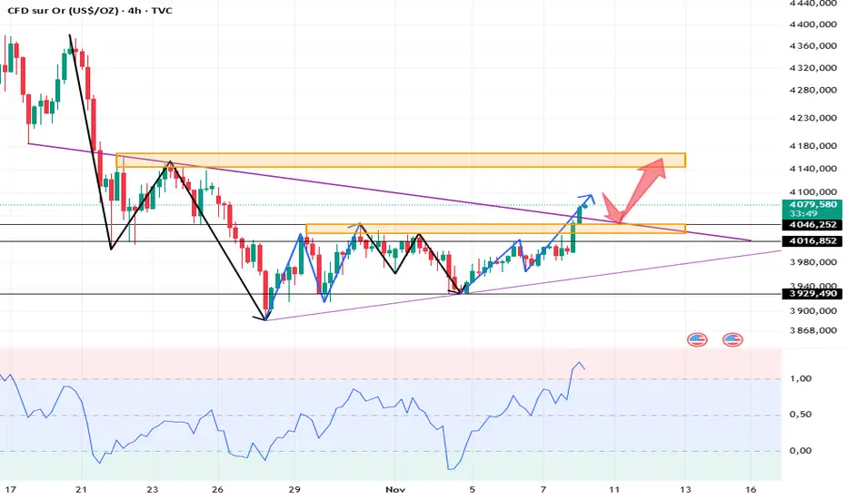L'or a franchi sa récente fourchette de négociation sur le graphique journalier, ouvrant la voie à un trading de suivi de tendance. À la hausse, le niveau clé à surveiller se situe entre 4080 et 4085 ; sa capacité à se maintenir est cruciale pour la poursuite de la hausse. Une figure de « creux arrondi » à court terme est bien visible sur le graphique journalier. À la baisse, il convient de surveiller un nouveau test du niveau des 4000.