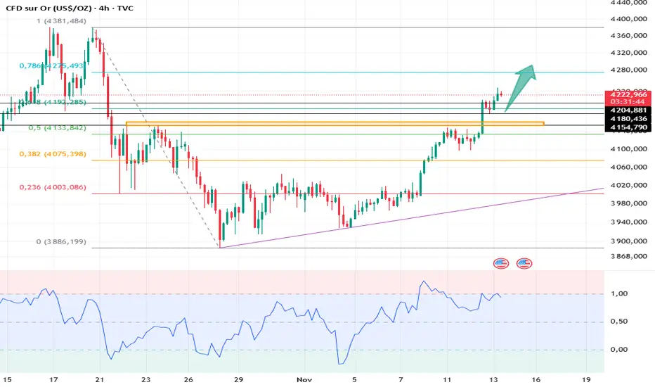 La première stratégie consiste à acheter au prix actuel, ce qui est relativement risqué. Une stratégie plus sûre consiste à attendre un repli vers les alentours de 4204/4200 pour entrer sur le marché.