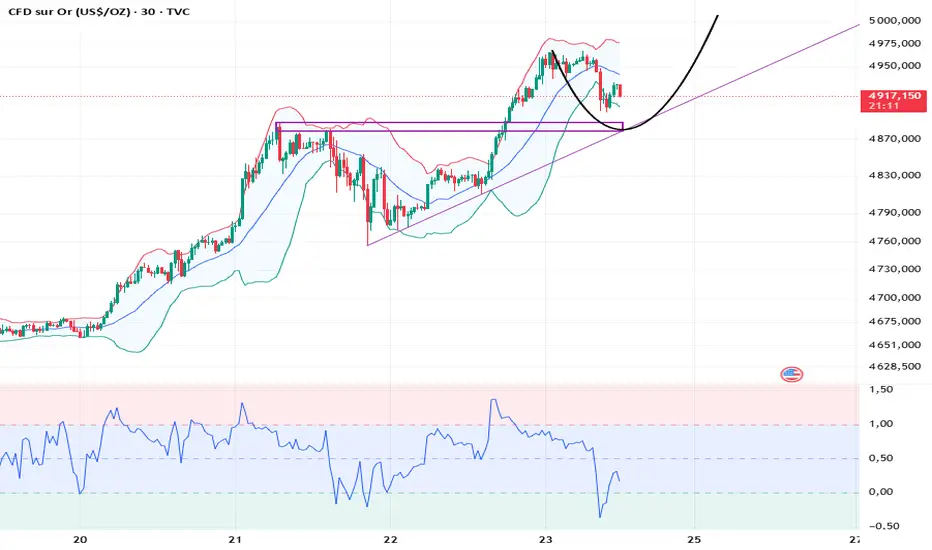 Résistance sur 1 heure : 4967, Support : 4900