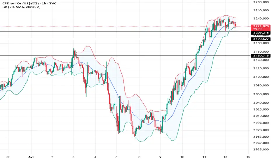 La résistance graphique sur une heure est de 3 250, le support ci-dessous est de 3 210.