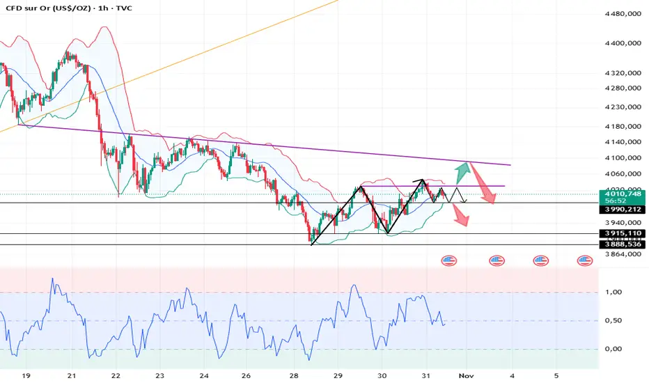Après un double creux hier, le cours de l'or a rebondi, atteignant même brièvement 4040 aujourd'hui. Cependant, cette dynamique a été de courte durée et les cours ont rechuté durant la séance asiatique. Ils se situent actuellement autour de 4000.