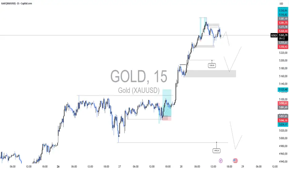🔹 5 287 – 5 300 → zone de distribution / liquidité haute, idéale pour un rejet si le marché sur-réagit
