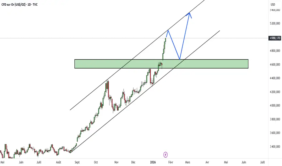 L'or a connu une hausse rapide et impulsive ces dernières semaines, atteignant le seuil psychologique des 5 000 $. Bien que cette progression témoigne d'une forte dynamique haussière, acheter à ces niveaux comporte un risque élevé.