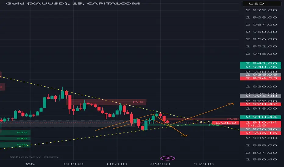 Salut a tous a suivre ce triangle en M15 bearish ou bullish sorti a 2908 sell ou buy a 2918 a suivre !!