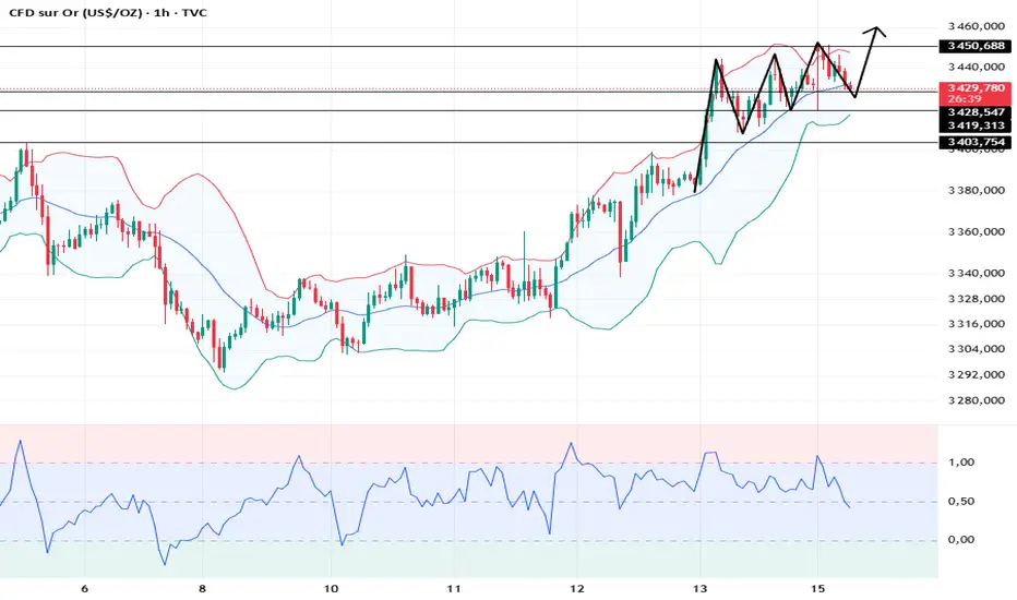 Résistance graphique sur une heure à 3 450, support sous 3 428-19