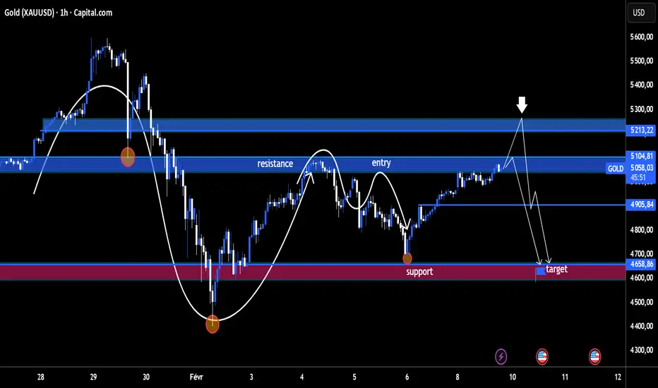 Résistance majeure / Supply : ~5 100 – 5 213