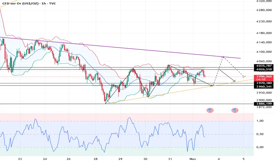 Graphique 1 heure : Résistance : 4025, Support : 3970.