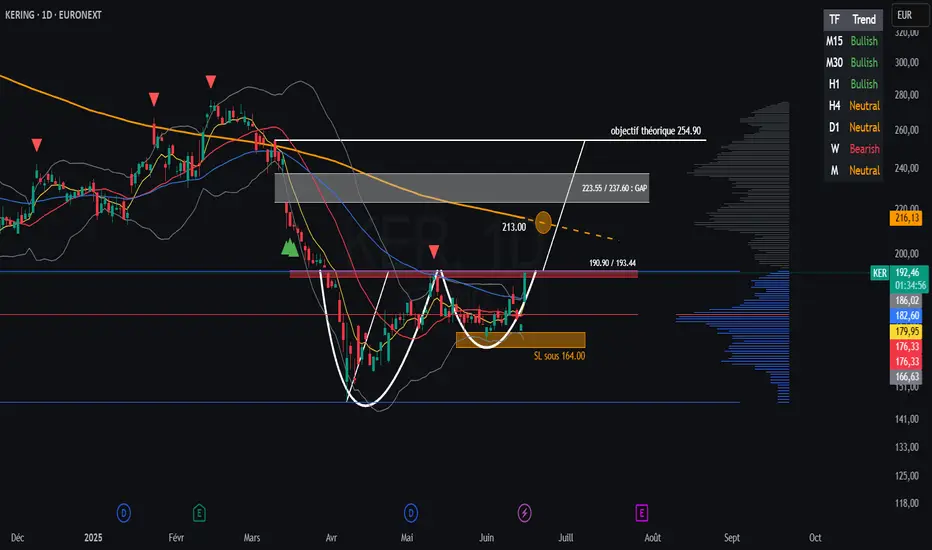 TP2 : 223,00 / 237,00 € – comblement d’un gap visible sur le daily