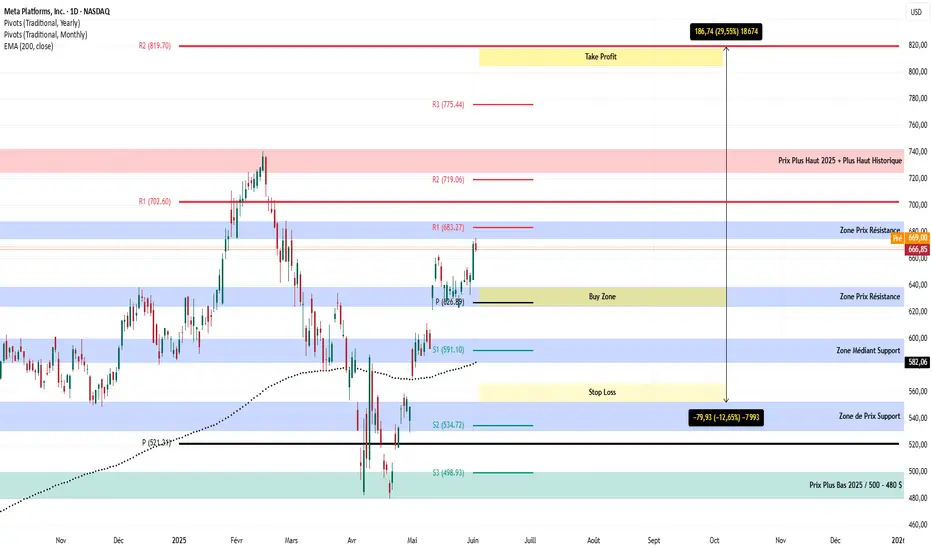 META est dans une configuration haussière bien construite, avec une zone d’entrée technique déjà testée avec succès.