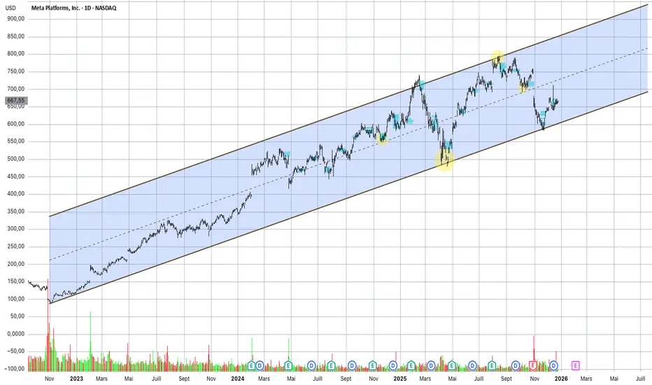 L’action Meta (META) évolue depuis longtemps dans une dynamique haussière bien structurée. Les replis restent contenus et servent principalement de phases de respiration, ce qui laisse penser que le marché pourrait continuer à évoluer dans cette tendance dominante. 🚀