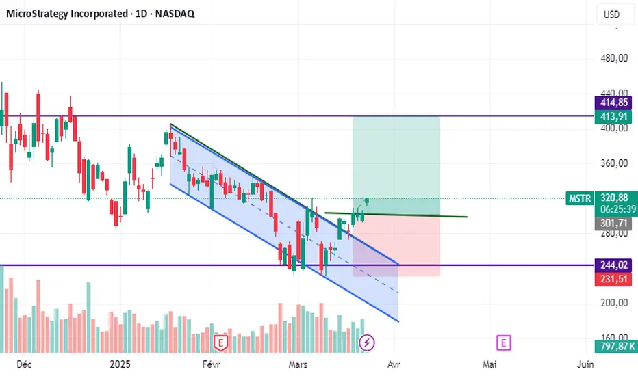 mes analyses sur l'action MSTR j'attends le marché casse le niveau 302.96 pour prendre une position d'achat et mon TP Sera 369.04