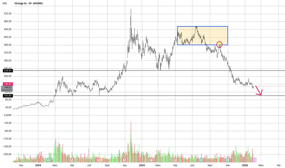 Tant que MSTR reste sous ses niveaux techniques majeurs, la baisse pourrait se prolonger vers la zone des 100 $. Un rebond technique est possible, mais il resterait fragile sans signal clair de retournement.
