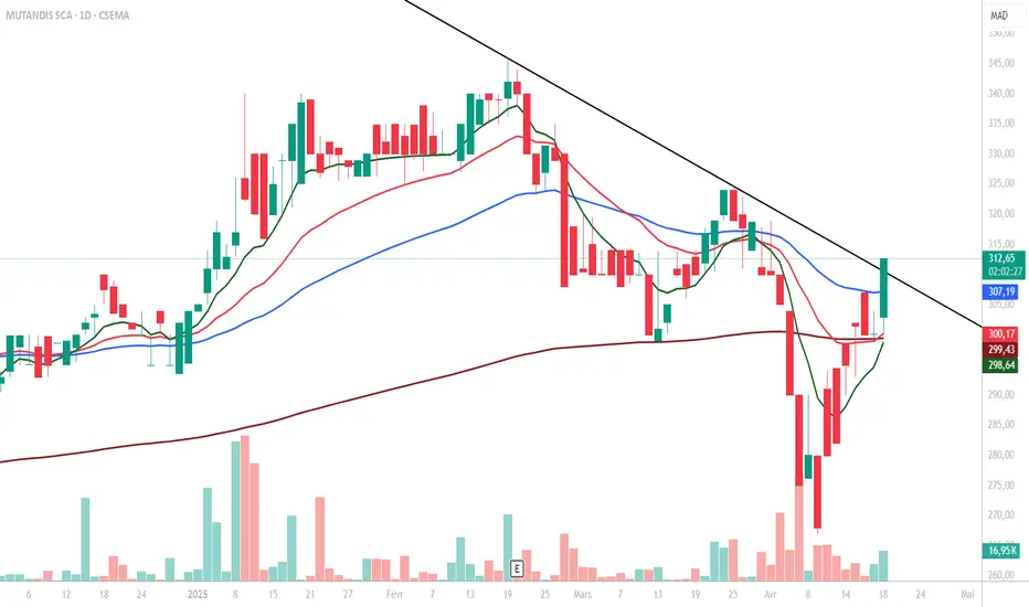 Support immédiat : autour de 300 MAD (ex-résistance cassée).