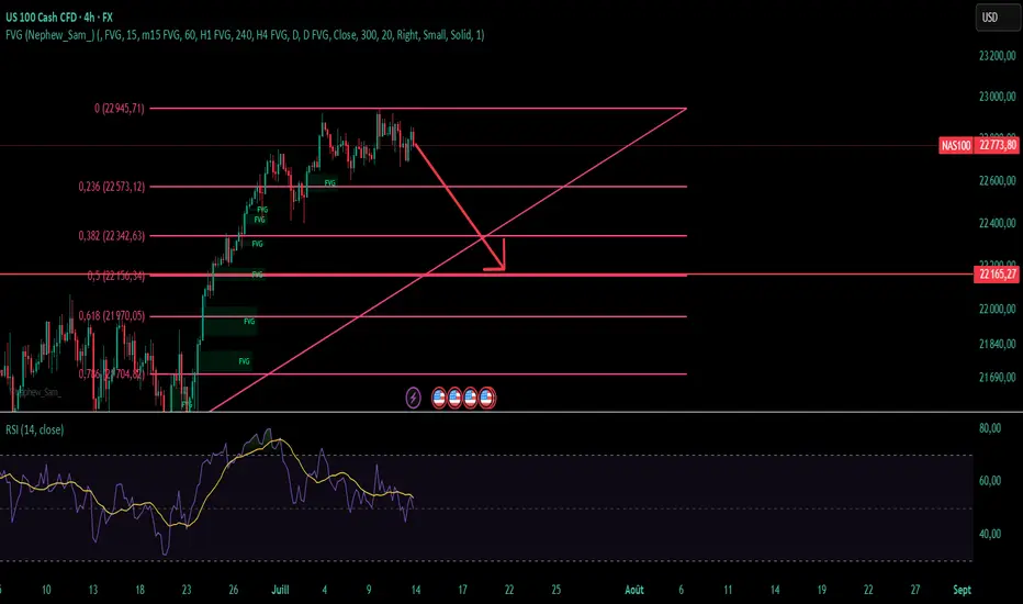 Avec une nouvelle actualité des droits de douanes, la tendance générale risque de se calmer pour aller rechercher les 22000 du NAS aux alentours des 0.5 fibo.