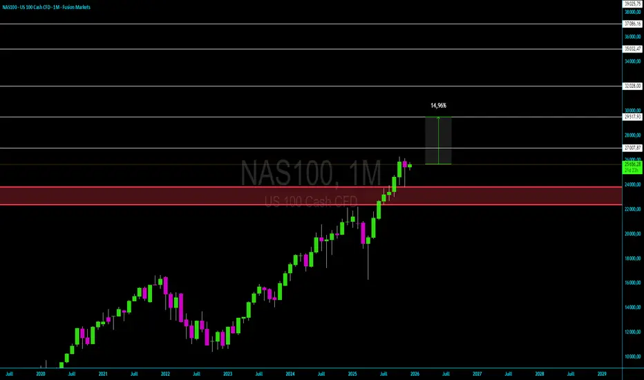 25 000 – 27 000 pts = zone de compression près des plus hauts.