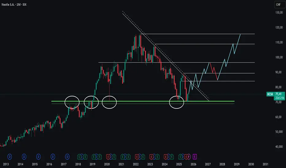 La tendance reste baissière, mais je note que le prix a déjà rebondi une fois sur son support long terme.
