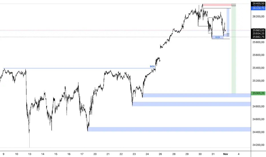 Le marché réagit à cette zone bleue, correspondant à une mitigation d’order block sur la structure interne. Cette zone représente une accumulation institutionnelle avant une potentielle expansion vers le haut.
