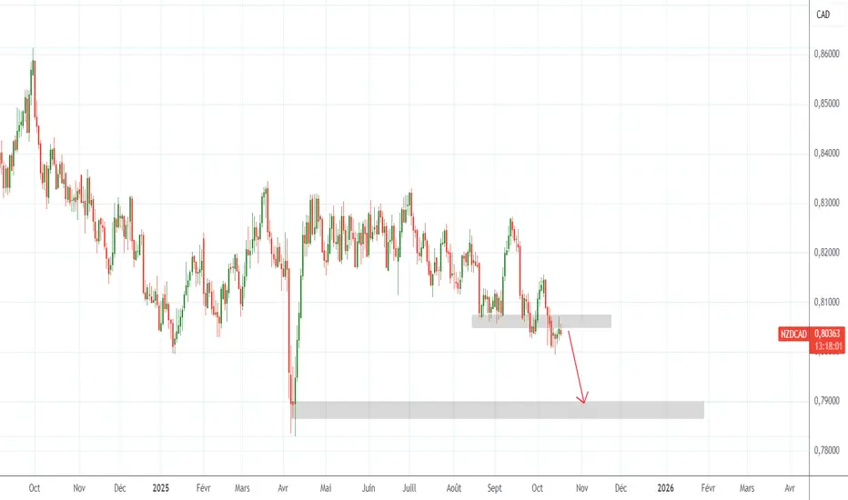 NZDCAD DAILY - tendance baissière - retest sur la résistance
