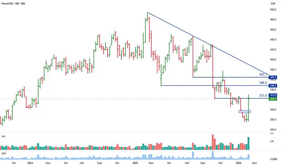 Belle impulsion haussière sur Ferrari, ce qui a permis de fermer le gap. Malheureusement, le marché a clôturé sur la résistance à 323. Par conséquent, ce n’est pas encore un achat. Il faudra attendre une clôture au-dessus des 348.6 pour envisager une position.