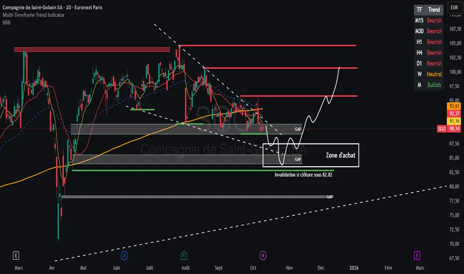 ➡️ J’attends un retour dans la zone d’or 🟡 + comblement du GAP pour envisager un rebond à l’achat 🎯