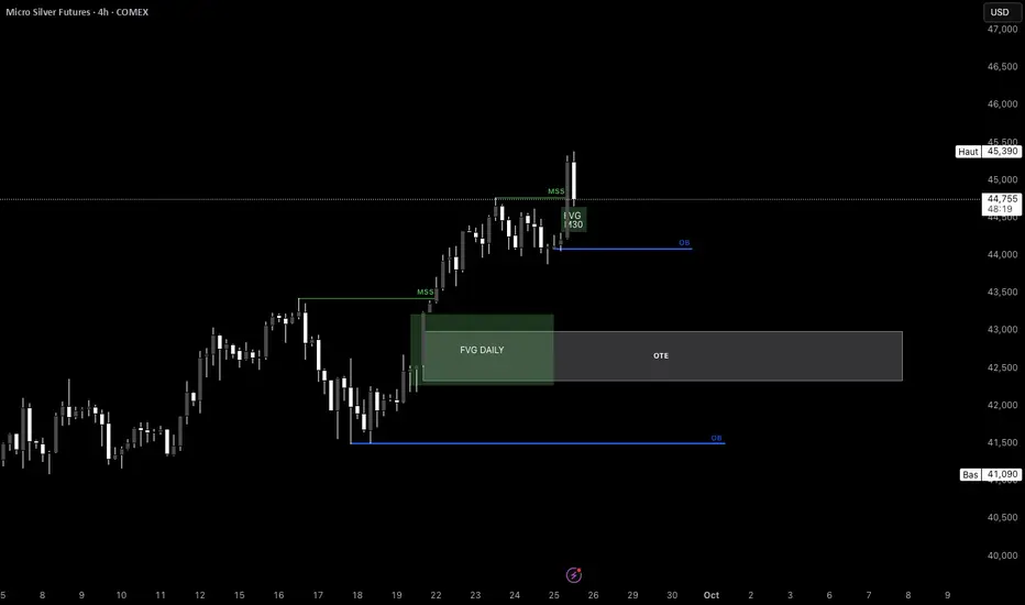 ➡️ Si le Gold ne réagit pas et imprime un nouveau plus bas, alors je m’attends à ce que le Silver suive et vienne chercher le prochain niveau H4 / Daily (FVG + OTE + OB plus bas).
