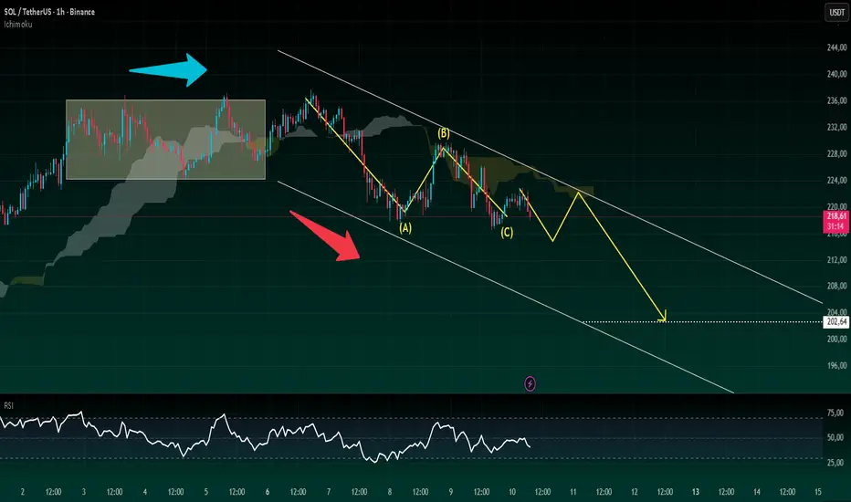 SOL continue de se déplacer dans le canal descendant H1 après avoir échappé à la zone d'accumulation précédente. Le modèle de vague descendante A–B–C semble avoir complété une partie de la vague C, mais il n’y a pas suffisamment de signal pour confirmer un renversement.