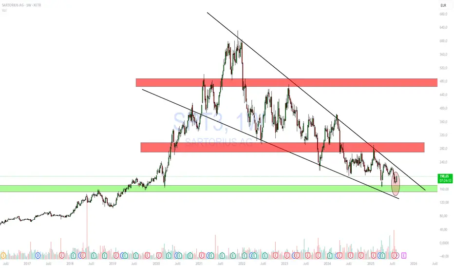 Après plusieurs mois de pression vendeuse, Sartorius AG rebondit fortement cette semaine avec une hausse proche de +10 %, portée par un retour des acheteurs sur un support historique autour des 160-170 €.