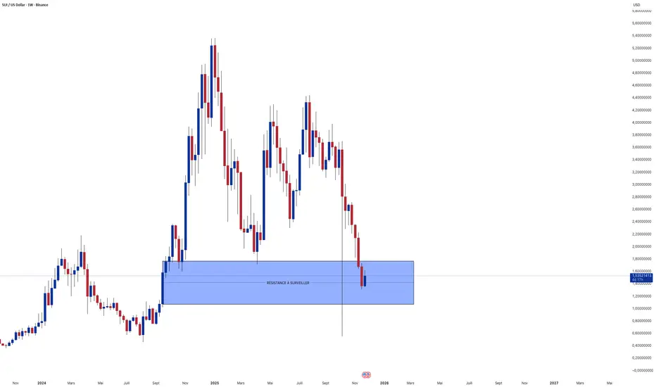 - Support majeur : La zone des 1.60$ - 1.75$. C'est le niveau de défense clé. Tant que SUI reste au-dessus de 1.60$, la structure haussière long terme est préservée.