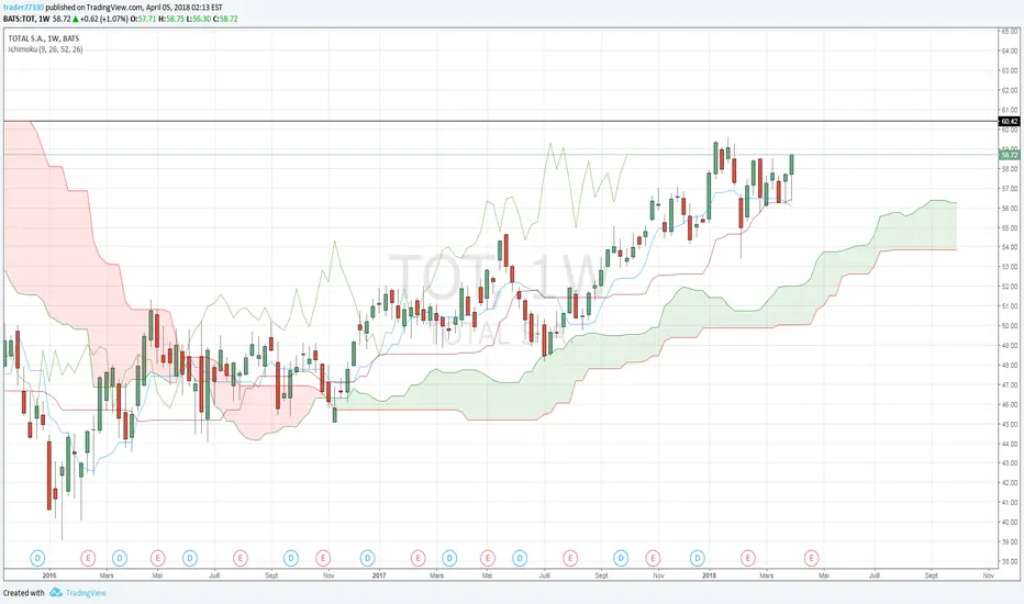 Le cours de l'action TOTAL est passé au-dessus du nuage Ichimoku en unité de temps journalière.