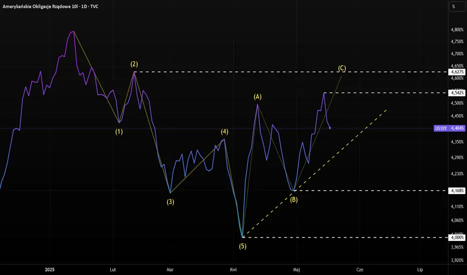 Rentowność 10-letnich obligacji USA i potencjalny układ fal