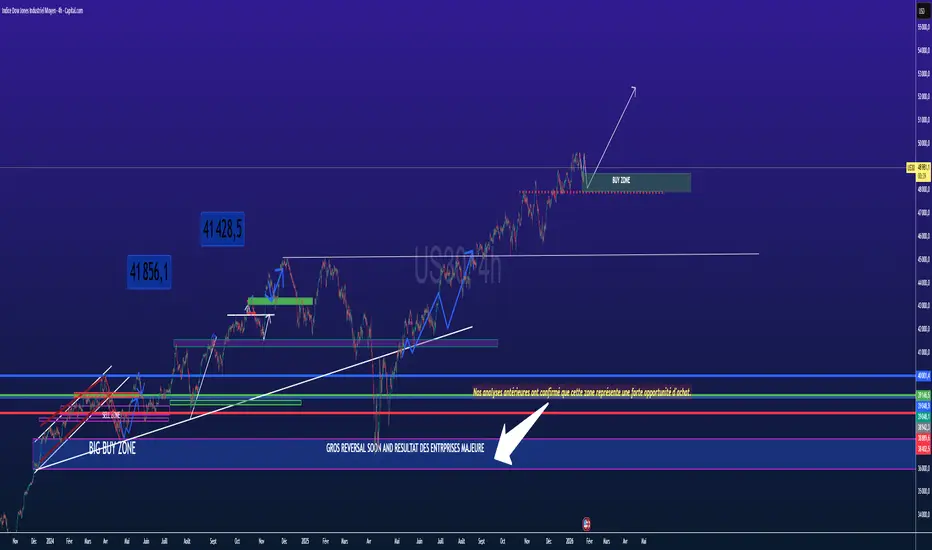 L'indice Dow Jones (US30) affiche une force acheteuse impressionnante. Le sentiment de marché est porté par une actualité géopolitique majeure : l'annulation des taxes de Trump envers l'Europe en échange d'accords stratégiques (Greenland). Cette détente diplomatique libère un potentiel de croissance massif pour les entreprises américaines.