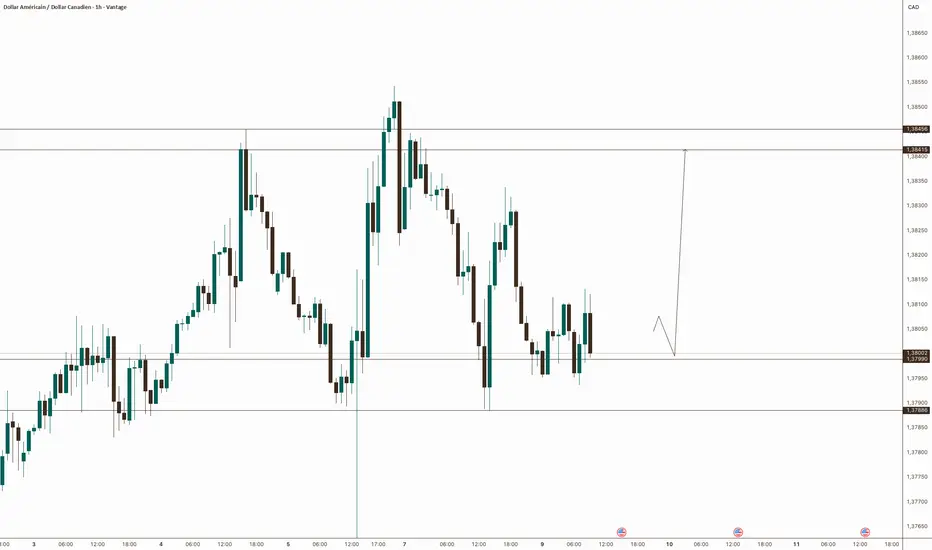 - Prix actuel autour de 1.38019, donc au milieu du range → conditions propices aux faux signaux, mieux vaut trader les bords ou la cassure franche.