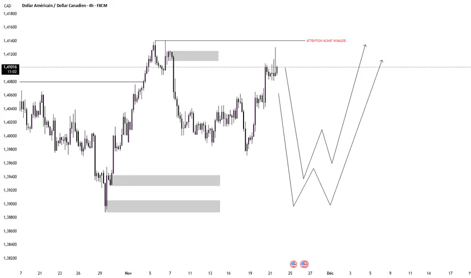 Là, le prix retrace vers mes zones de demande autour de 1.3920 puis 1.3880. C’est dans ces zones que j’attends un vrai setup : soit un simple rebond propre, soit un W plus profond avant de repartir.