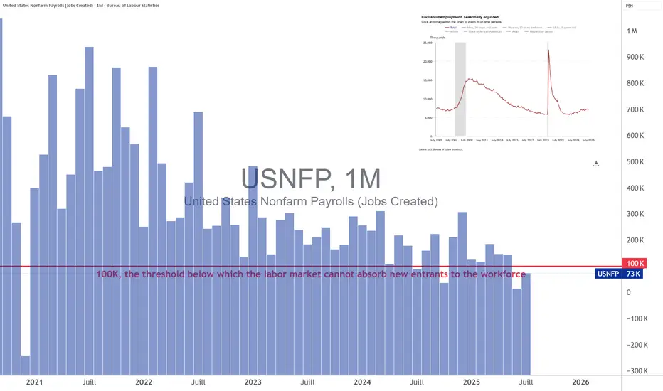 Cela fait donc trois mois consécutifs que le nombre de créations nettes d’emplois aux USA n’est pas suffisants pour absorber les nouvelles arrivées au sein de la population active. Ce seuil minimum est établi à 100K créations nettes d’emplois par mois et le consensus pour le chiffre du vendredi 5 septembre se situe encore sous ce seuil.