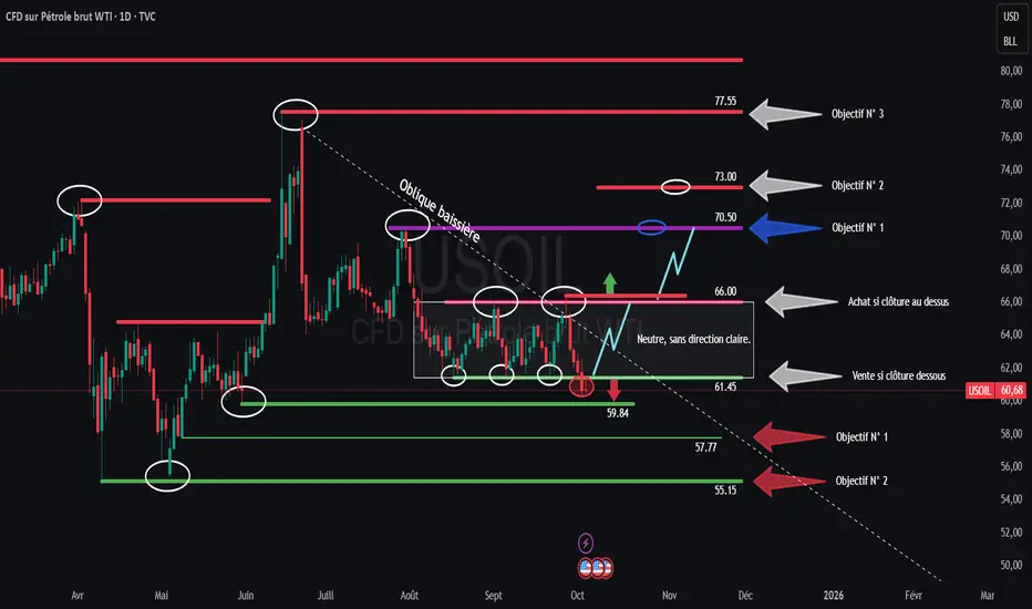 Tant que le prix reste sous 61.45, mieux vaut ne rien faire… ou vendre.