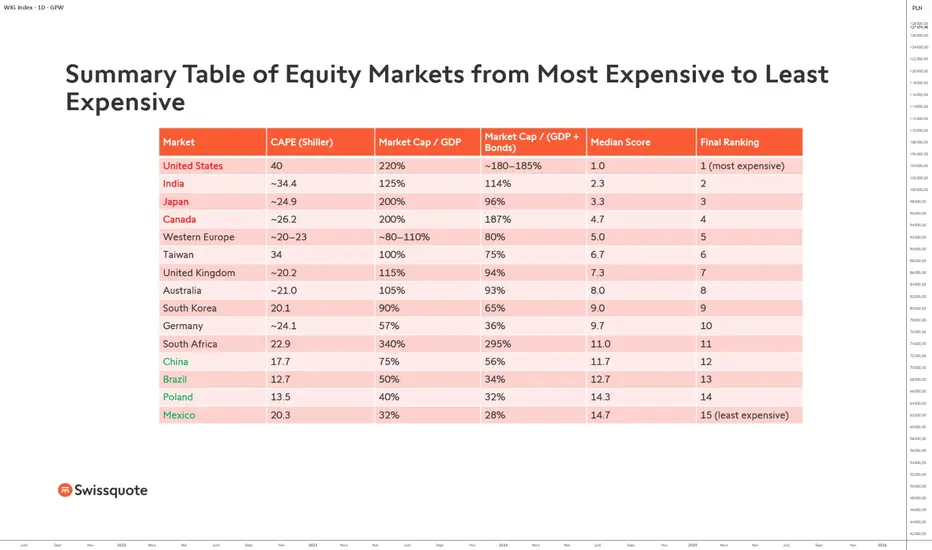 Il donne une vision macro de la valorisation d’un marché actions par rapport à la capacité productive du pays. Un niveau très supérieur à 100 % suggère que le marché actions est cher relativement à l’économie sous-jacente, toutes choses égales par ailleurs.