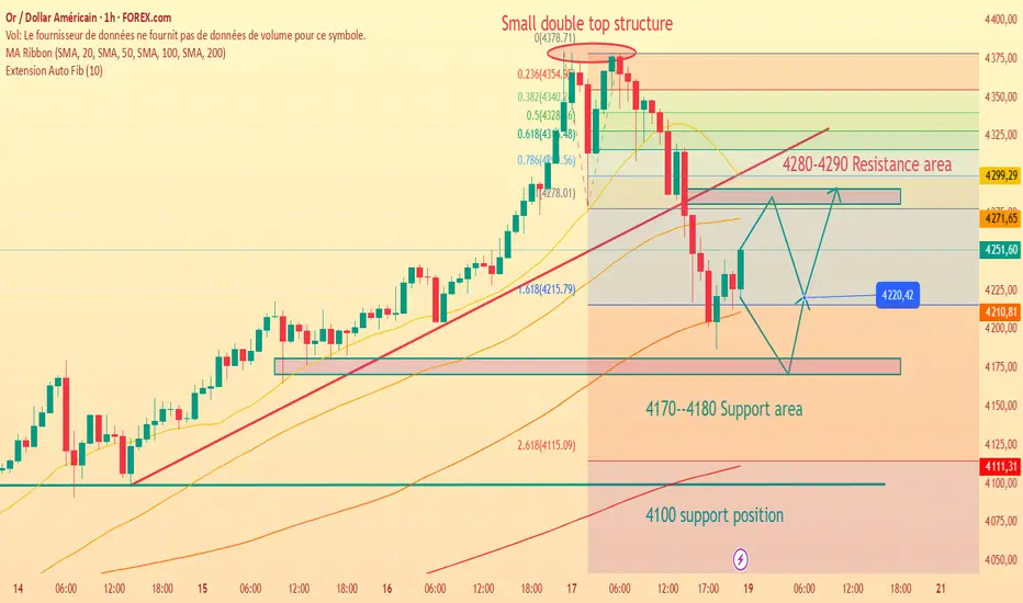 Résumé : Les signaux techniques baissiers sont clairs. Il est conseillé aux traders d'attendre patiemment que le cours rebondisse vers la zone de résistance 4280-4290 avant de prendre des positions courtes, offrant ainsi le meilleur rapport risque-rendement. Les positions longues ne doivent être envisagées que comme une stratégie de rebond à court terme sur la zone de support solide 4170-4180 et requièrent une extrême prudence.