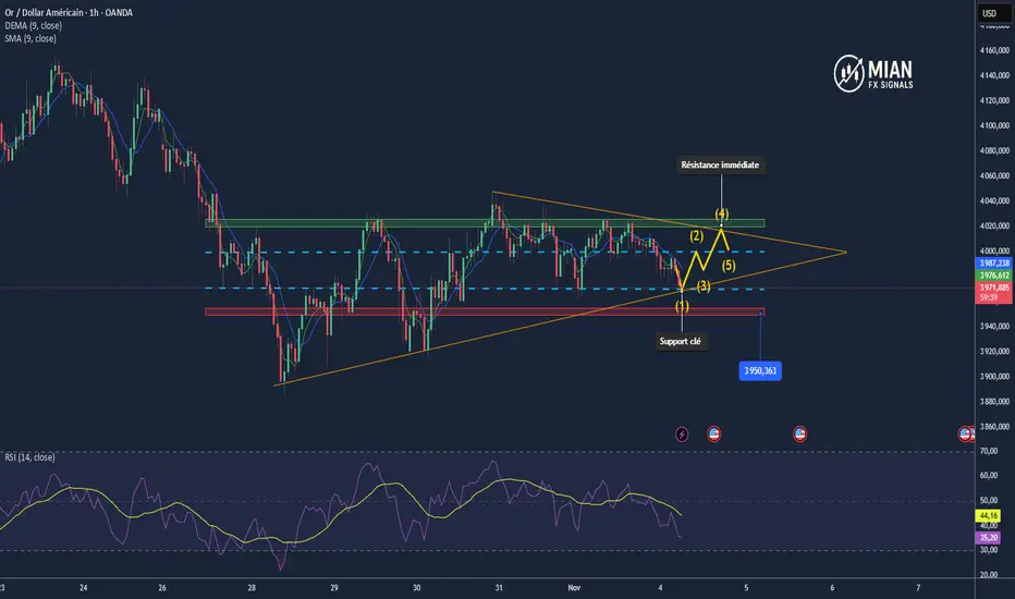 • Si le cours clôture H4 sous ~3 950 → objectif probable ~3 900.