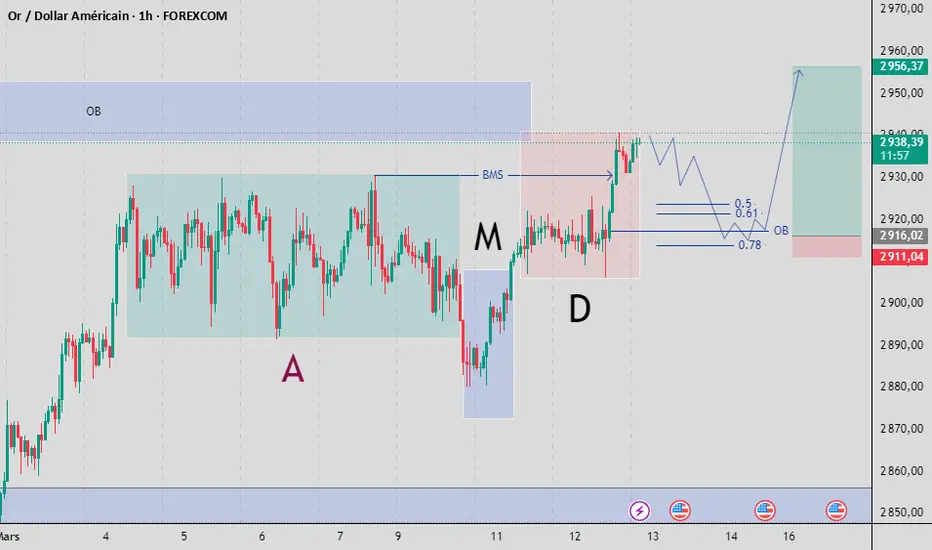 Le marché nous a créé une bonne configuration AMD (Accumulation, Manipulation, Distribution), Après la validation de la phase d’Accumulation avec la présence du BMS, nous nous attendons à un retracement dans le range de l’Accumulation pour continuer la distribution (la redistribution donc). Notre zone d’entrée se situe sur un ancien OB non mitigé qui se trouve être en pleine zone OTE. Mon RR est de 8.1, ma plus grande marge.
