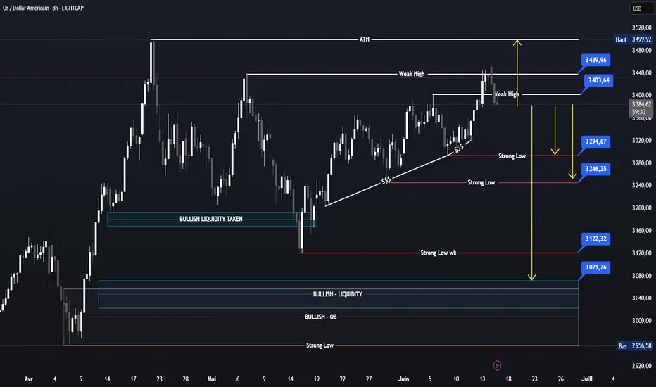 | \SHORT (Vente)\ | Sous les 3.400\$ | 3.295\$ → 3.070\$ | Corrections techniques ciblées |