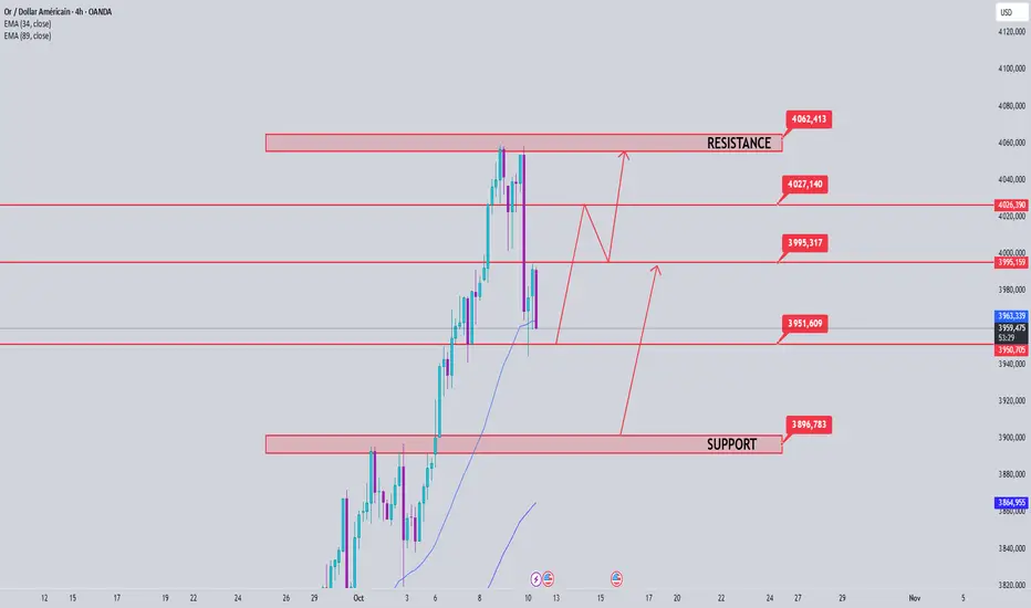 Après la forte hausse des jours précédents, l'or subit des prises de bénéfices et une forte pression vendeuse est observée aujourd'hui à Tokyo. La dynamique de correction actuelle rapproche le cours des zones de support importantes autour de 3950 et 3896, deux niveaux clés susceptibles de jouer un rôle déterminant dans l'évolution future du marché.