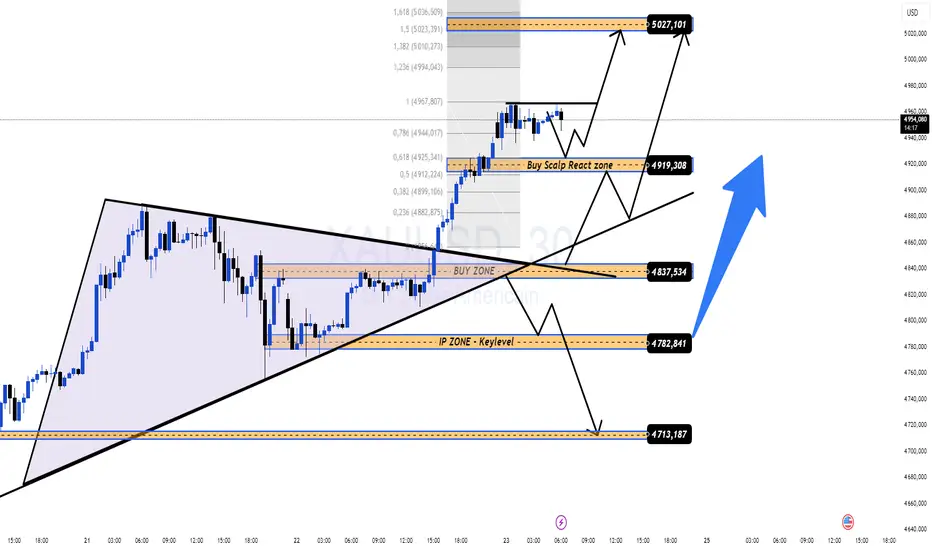 L'or reste en mode de continuation des ATH. La stratégie optimale n'est pas d'essayer de capter le sommet, mais d'acheter patiemment des replis en accord avec le flux des temporalités plus élevées. À ce stade, 5,000$ n'est plus une question de "si" — seulement "quand.