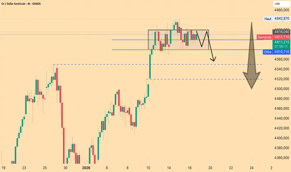 Vendredi 16 janvier, lors de la séance européenne, les cours de l'or ont fléchi, passant brièvement sous la barre des 4 600 $ à 4 591,32 $, et se négocient actuellement autour de 4 610 $.