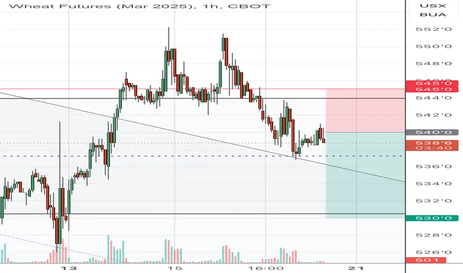Bán lúa mỳ kỳ hạn tháng 3 quanh 540, dừng lỗ 545, chốt lời 535-530