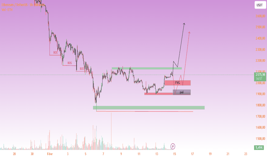 ETHUSDT – Potentiel retournement haussier depuis la zone de disc🧠 Structure du marché