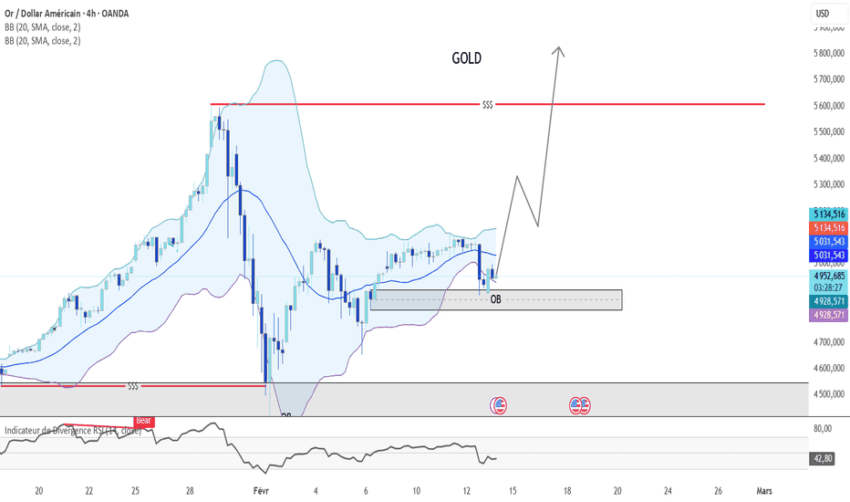Analyse GOLD (XAUUSD)Le scénario que tu surveillais s’est bien déroulé : le marché est venu chercher la zone d’orderblock H4 autour des 4900 et a délivré une réaction haussière propre (~580 pips). C’est un bon signal technique — mais pas encore suffisant, à lui seul, pour valider un retournement complet de tendance. On reste pour l’instant sur un rebond technique dans une structure plus large encore fragile.